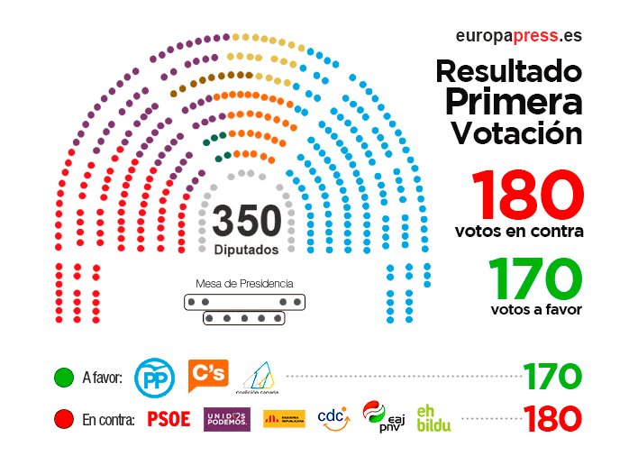 +++ÚLTIMAHORA Rajoy pierde la primera votación para ser presidente por 180 votos frente a 170 europapress.es/nacional/notic…