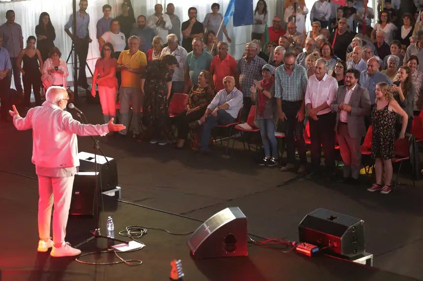 A sala interrompeu o discurso com uma salva de palmas. Não foi a única vez. Os apelos de Jerónimo e o slogan de que "a CDU avança com toda a confiança" têm eco imediato. E, mesmo que as previsões não sejam as mais favoráveis, o líder não se preocupa. "Ninguém pode acreditar em sondagens", remata. E segue em frente.